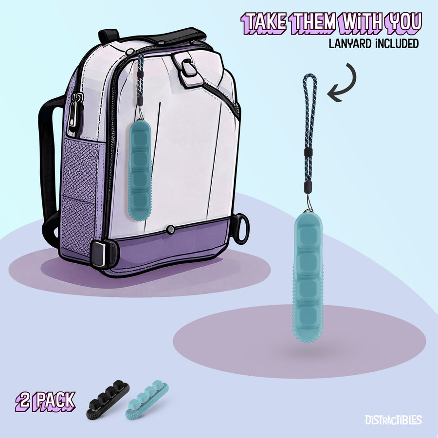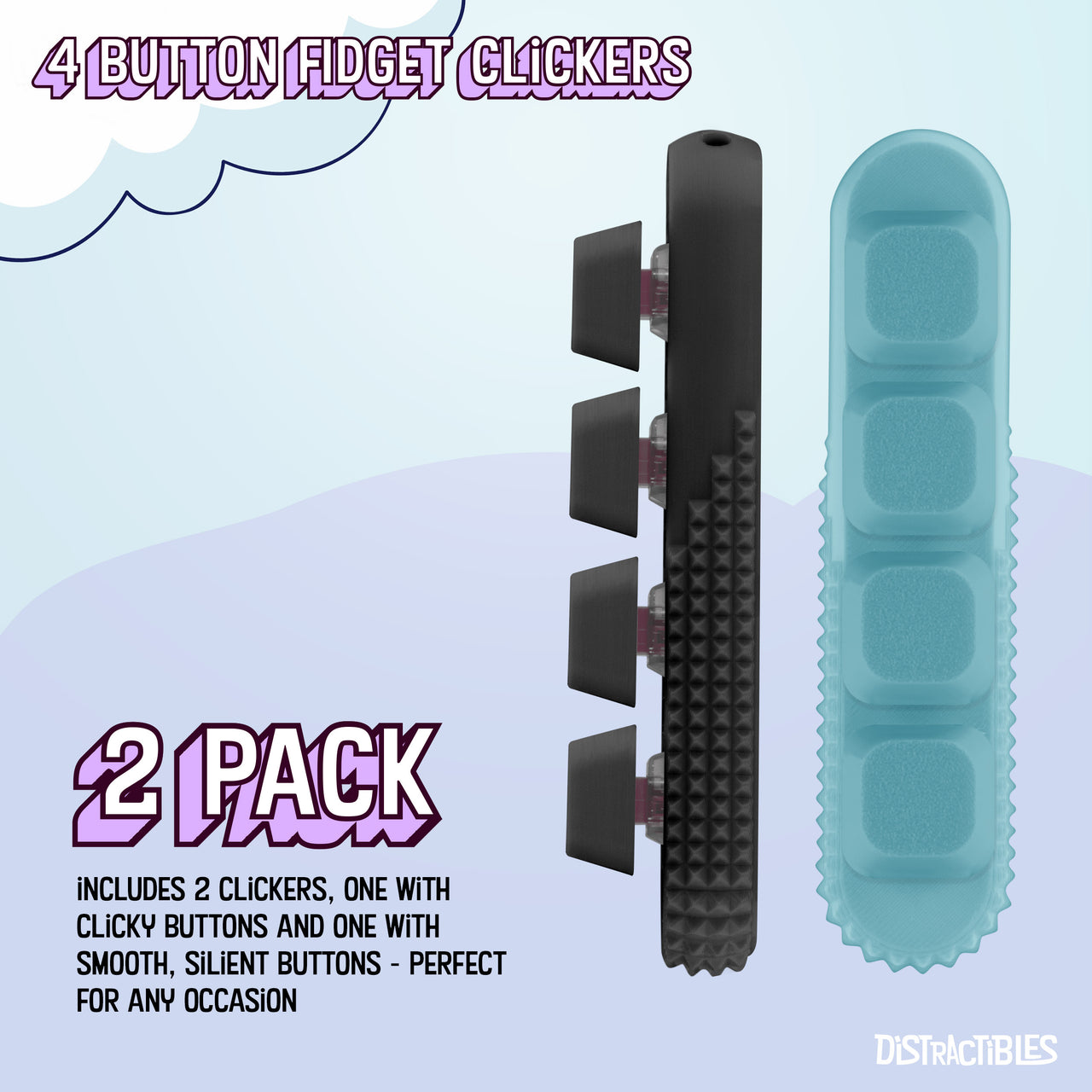2 Pack Fidget Clickers, 4 x Loud Click Buttons, Textured Design for Stress Relief & Focus Aid with Lanyard (Blue-Black)