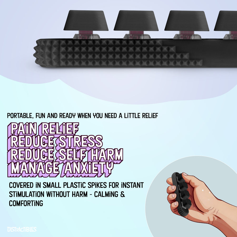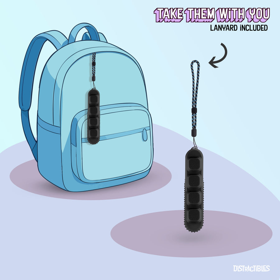 4-Button Fidget Clicker - Loud Click Switches, Textured Design for Stress Relief & Focus Aid with Lanyard (Black)