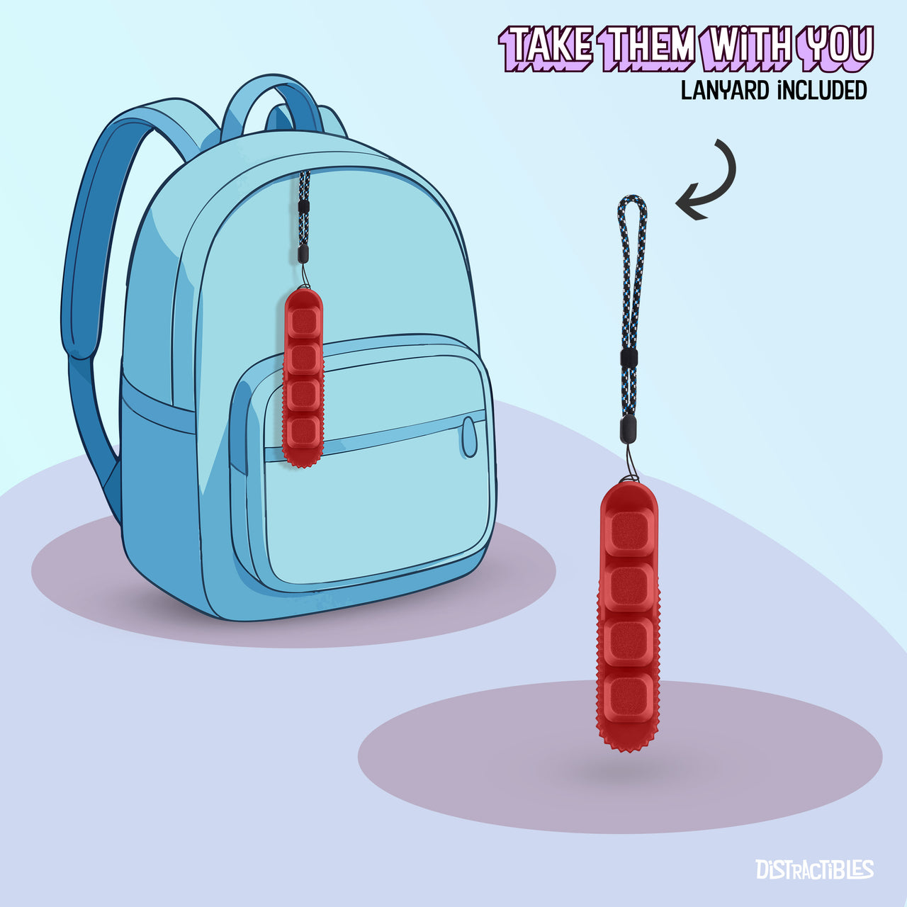 4-Button Fidget Clicker - Loud Click Switches, Textured Design for Stress Relief & Focus Aid with Lanyard (Red)