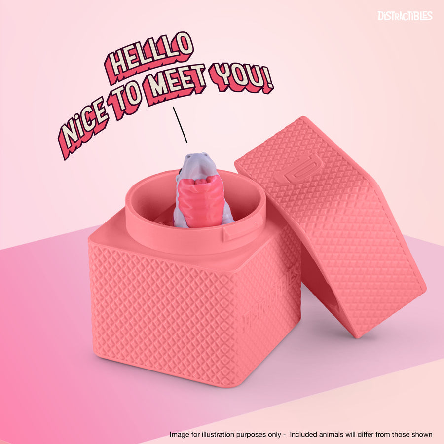 Mystery Fidget Animal Pack, 10 Articulated Animals + Bonus Fidget Clicker & Fidget Clicker Box, Random Colors (Pink)