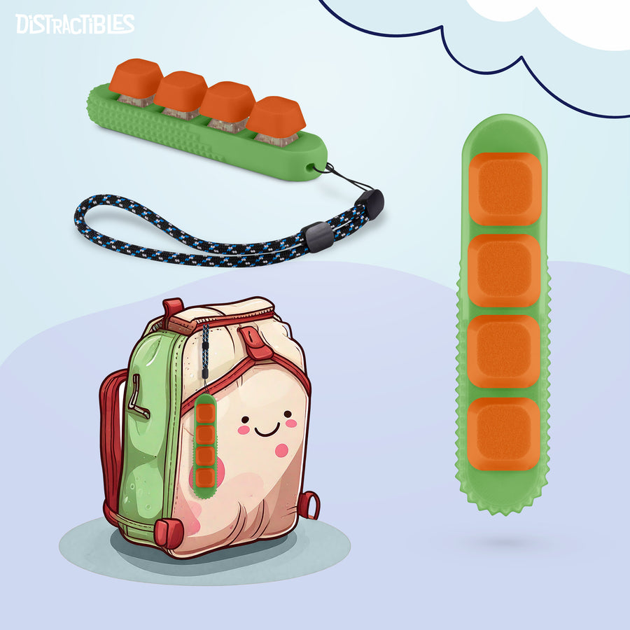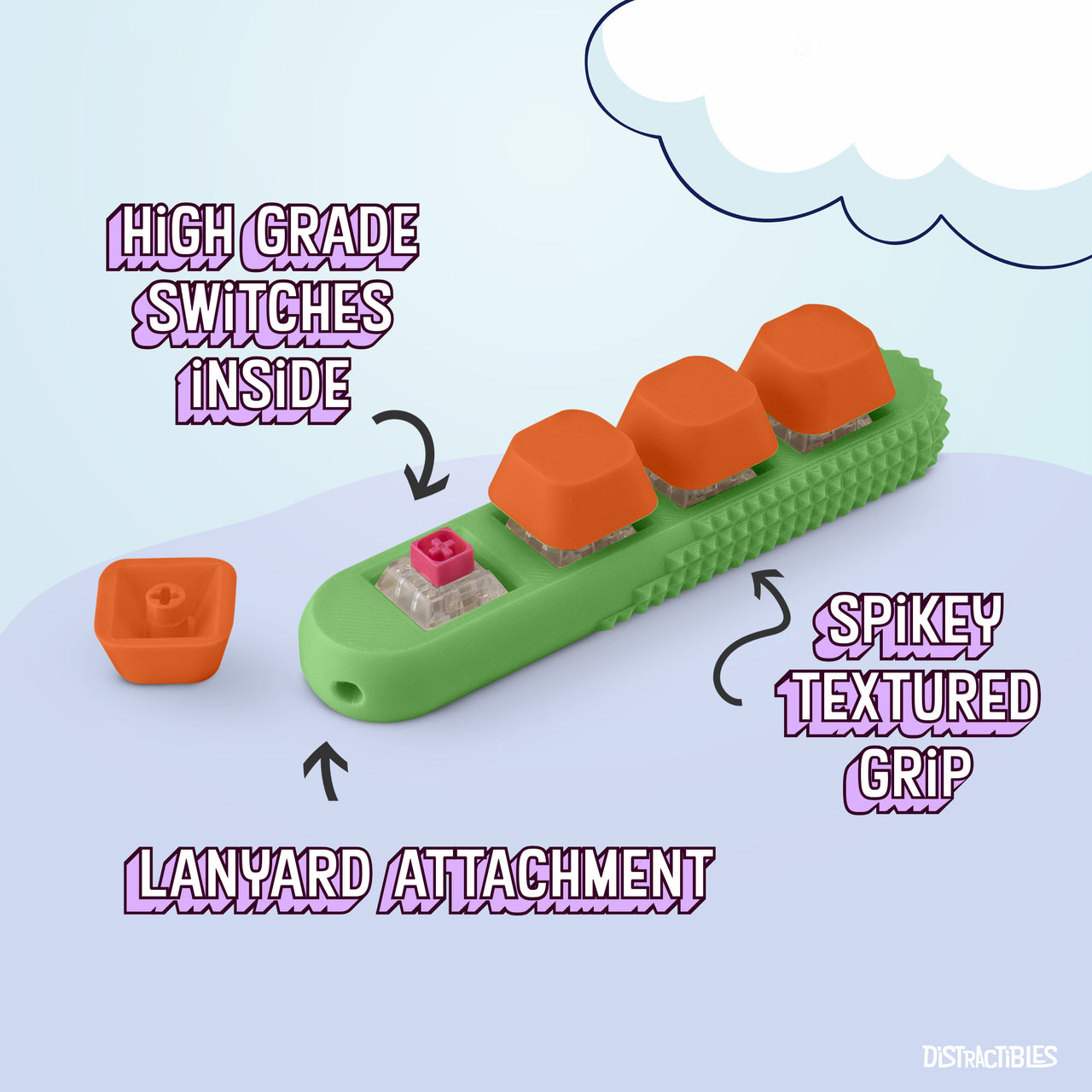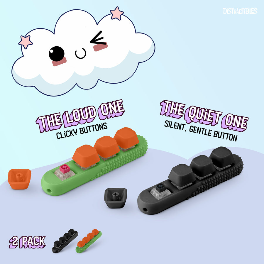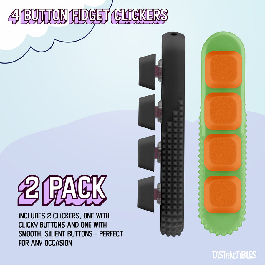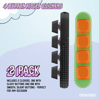 2 Pack Fidget Clickers, 4-Button Silent & Loud Click Options, Textured Design for Stress Relief & Focus Aid with Lanyard (Green-Black)