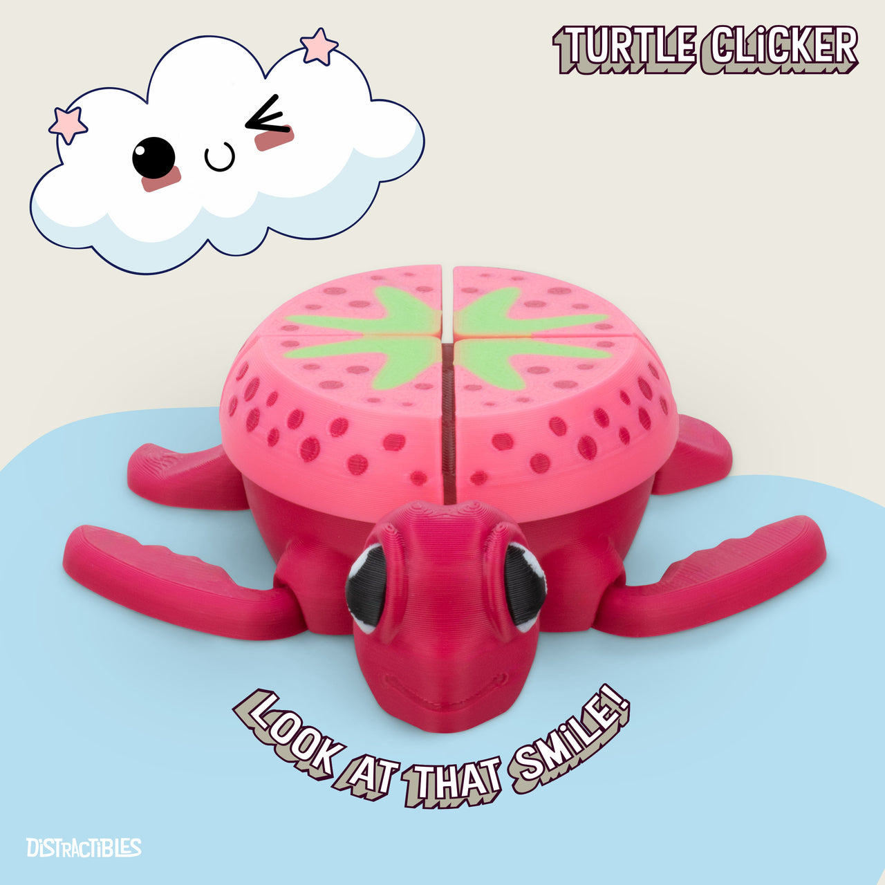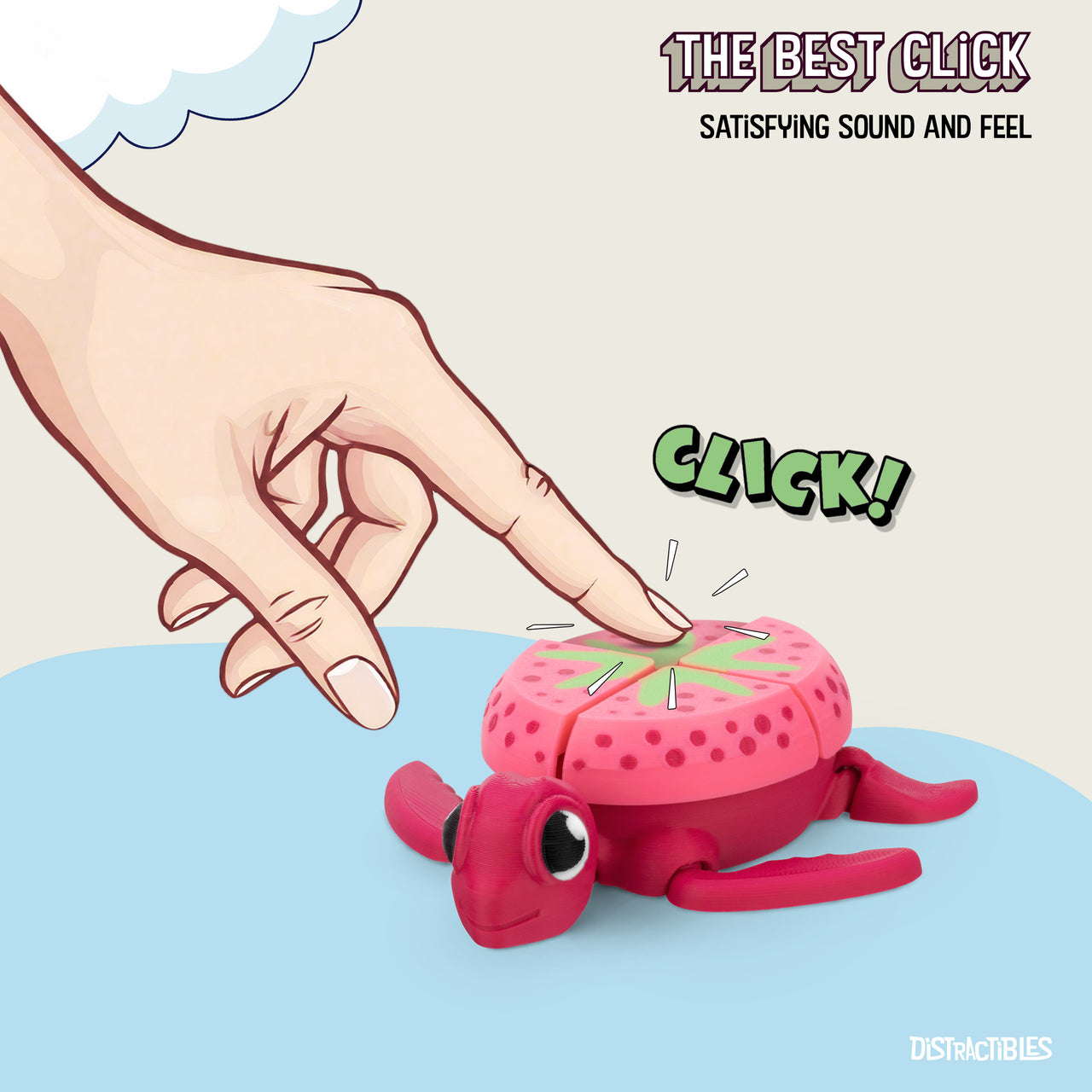 Turtle Fidget Toy, Articulating Design with Shell Clickers, Pocket-Sized & Durable, Stress Relief, ADHD, Autism & Stim (Strawberry/Red)