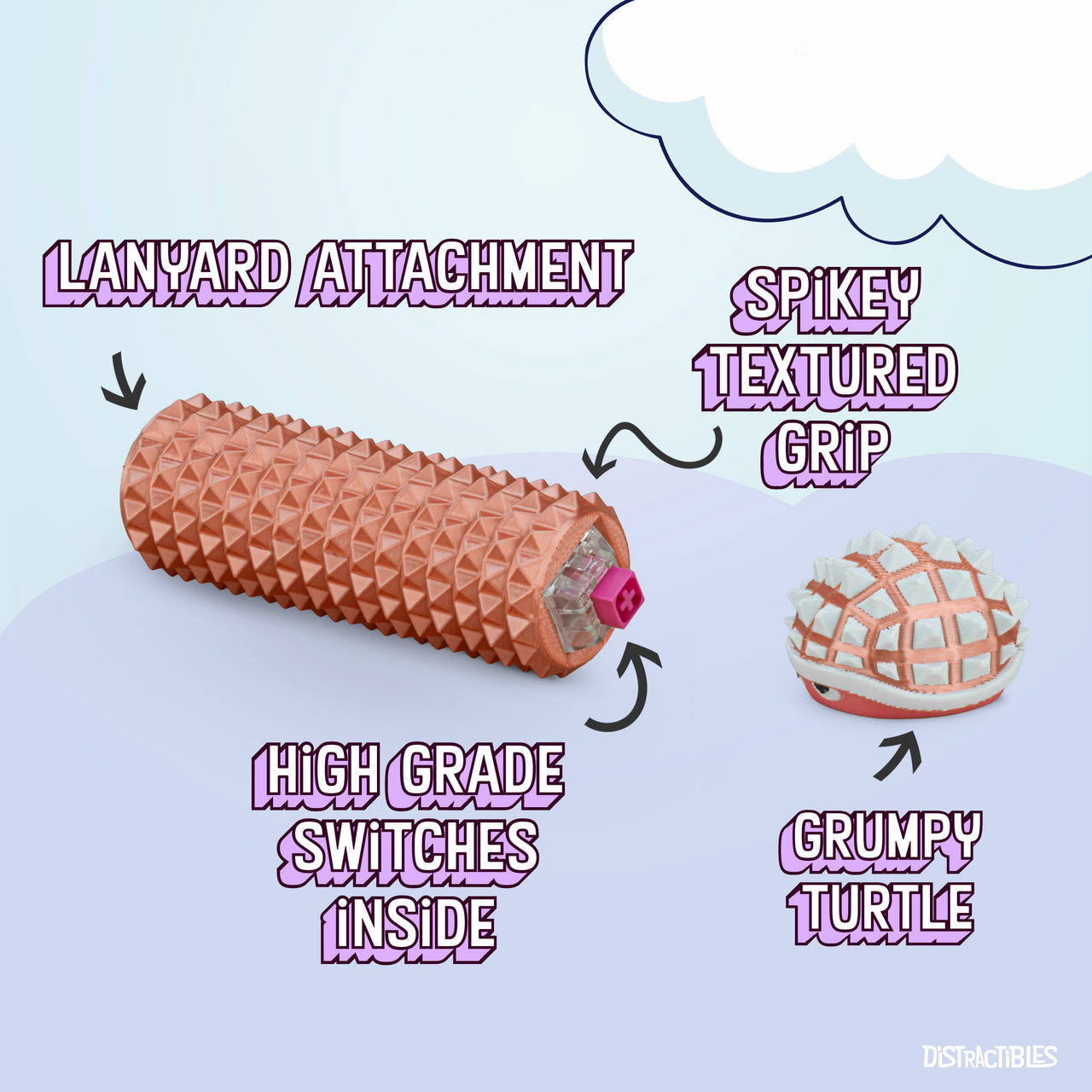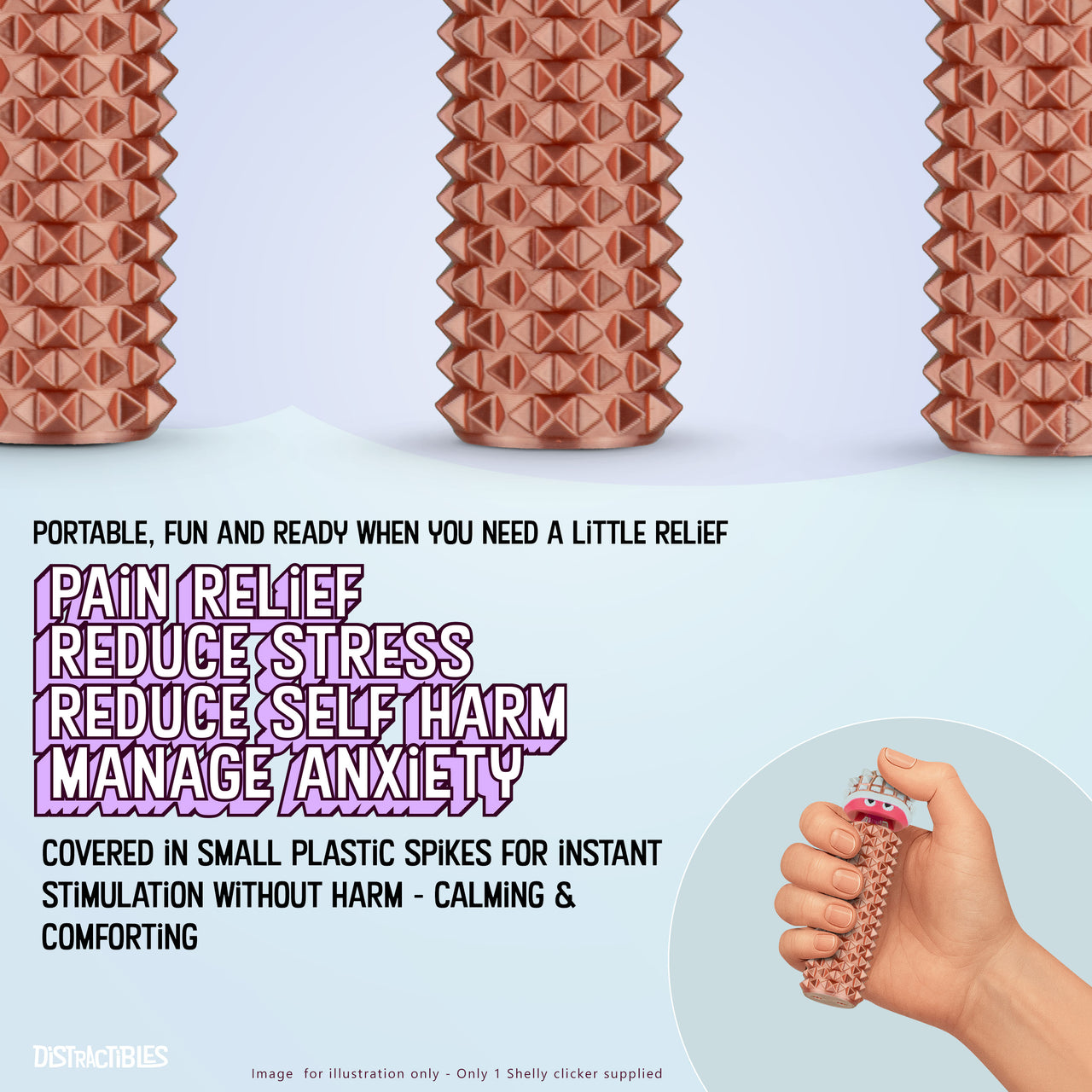 Shelly - Sensory Fidget Toy, Textured Pain Stimming Device, Stress Relief for Focus and Concentration (Neon Rosé)