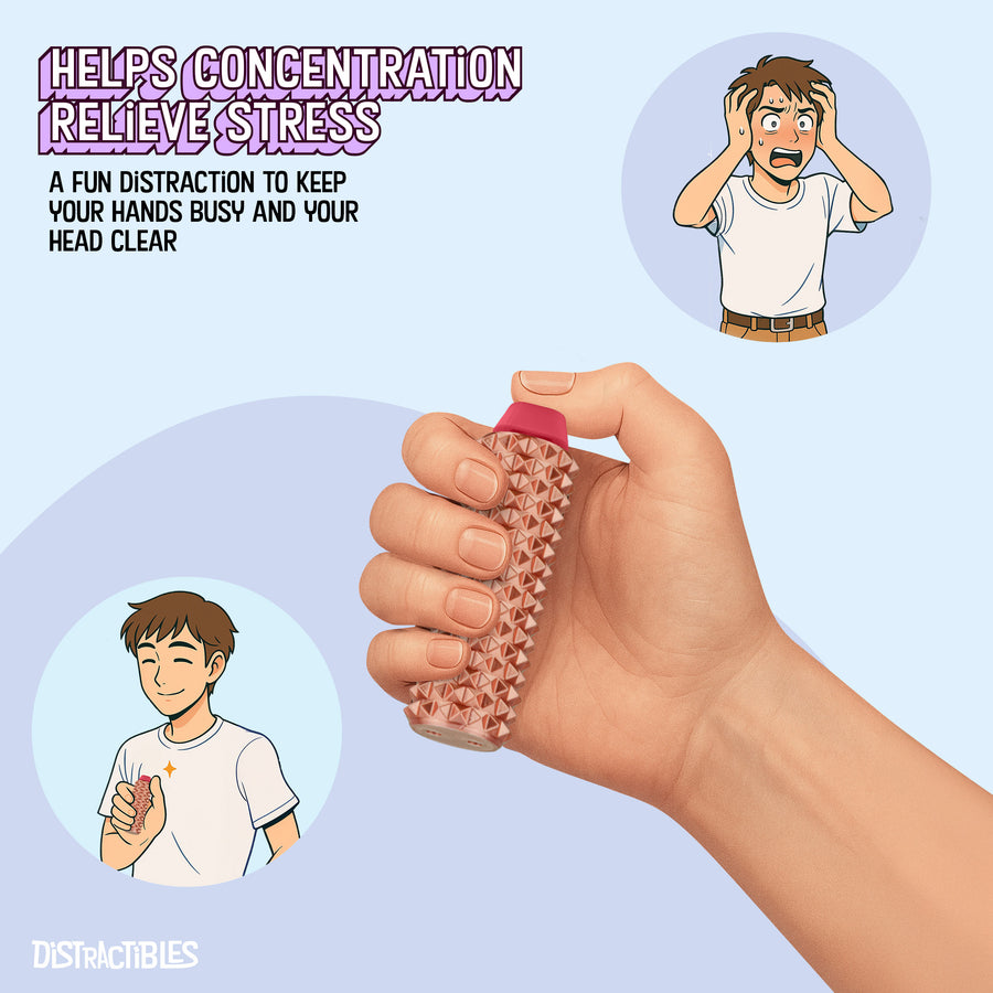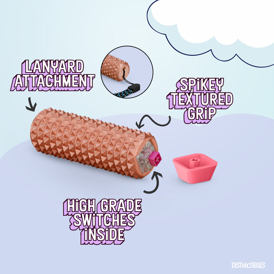 Spike Roller Clicker, Tactile Pain Stimming Fidget with Clicker Switch, Pain Stimulation Roller with Lanyard (Neon Rose)