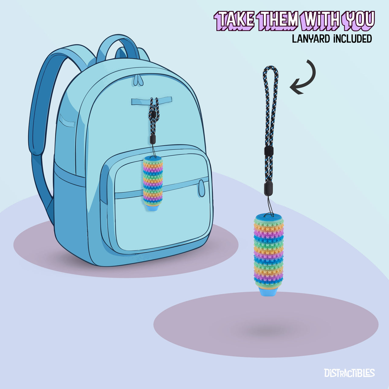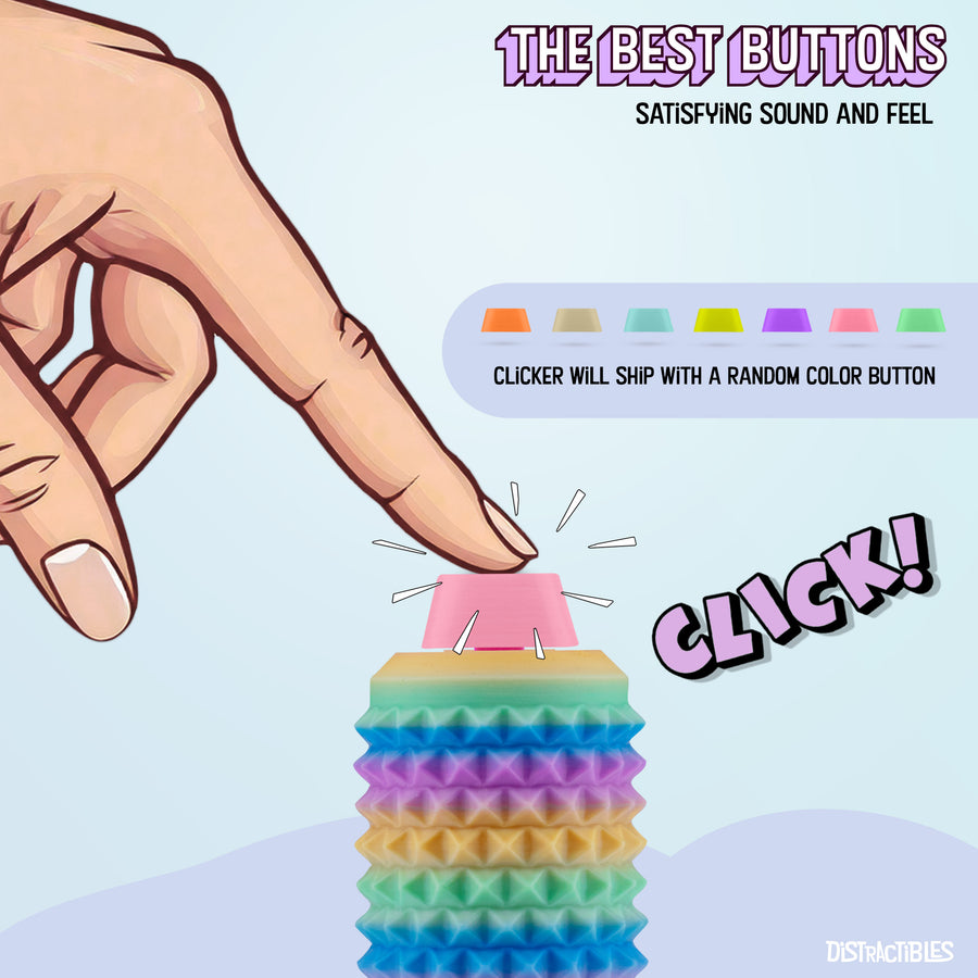 Sensory Roller Fidget Toy with Clicker, Tactile Spikes for Anxiety, Stress Relief, Pain Stimming, Autism - with Lanyard (Rainbow)