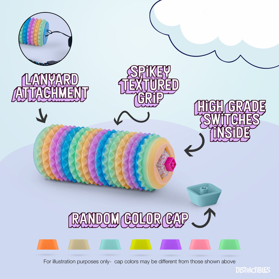 • MYSTERY COLOR CAP: Your rainbow spike roller will come with a random color keycap.